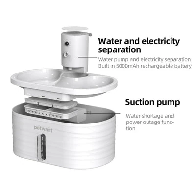 - Complete Cordless Design: Unlike traditional pet fountains that require constant power connections, this innovative model operates without cords, offering unparalleled placement flexibility